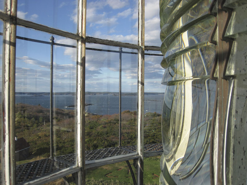 The Sequin Island Light house, a First Order Fresnel lens made up of 282 glass prisms. The light is visible from over twenty nautical miles. The original lighthouse was established here in 1795 and is Maine’s tallest and second oldest lighthouse. The Fresnel lens was installed in 1857.