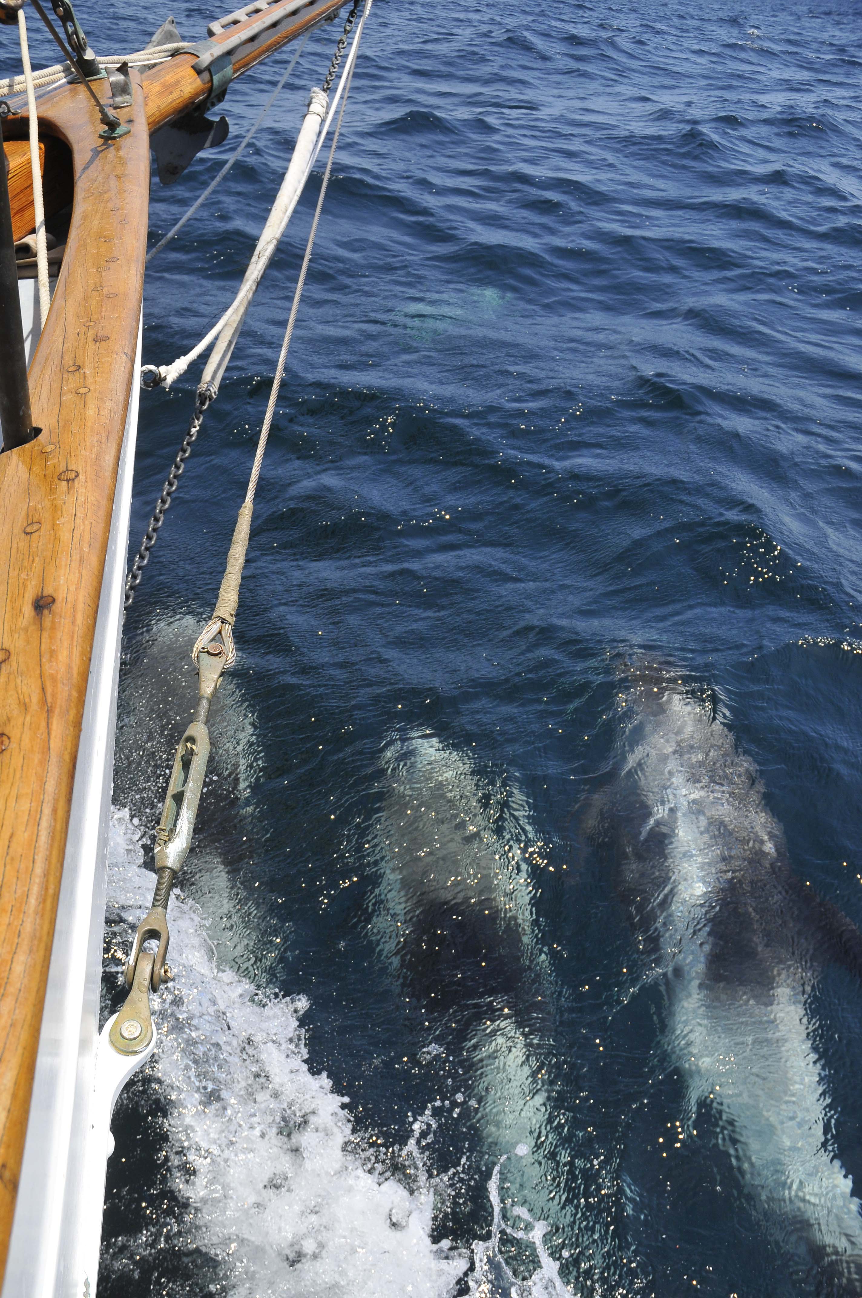 A group of 10 or so dolphins joined the boat for almost half an hour playing at the bow and jumping around beside the boat as we sailed along